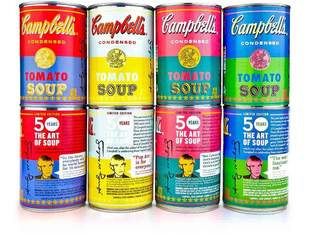 In 2012 Campbell’s launched a limited-edition series of tomato soup cans with Andy Warhol-inspired labels to commemorate the 50th anniversary of the artist’s work.