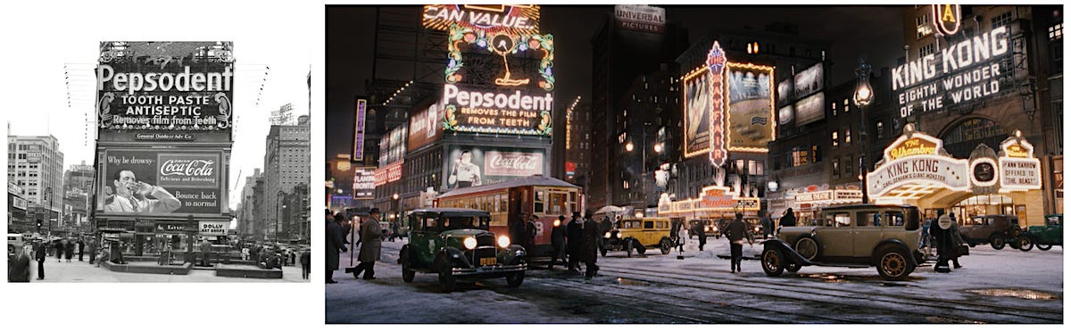 Pepsodent advertised in New York’s Times Square with a major neon sign. The sign showed up in the 2005 re-make of King Kong .
